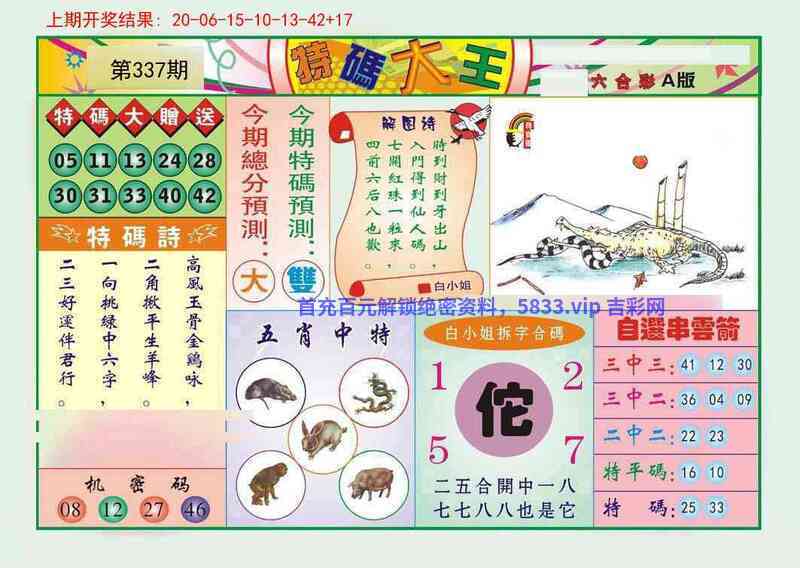 340期:凶美+两肖╠吉美+虎猪╣开:發00中